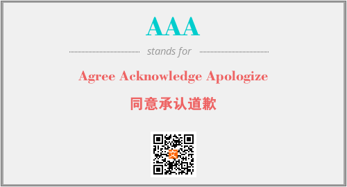 英文缩略词“AAA”经常作为“Agree Acknowledge Apologize”的英文缩写来使用,中文表示:“同意承认道歉”。本文将详细介绍英文缩写词AAA所代表英文单词,其对应的中文拼音、详细解释以及在英语中的流行度。此外,还有关于缩略词AAA的分类、应用领域及相关应用示例等。