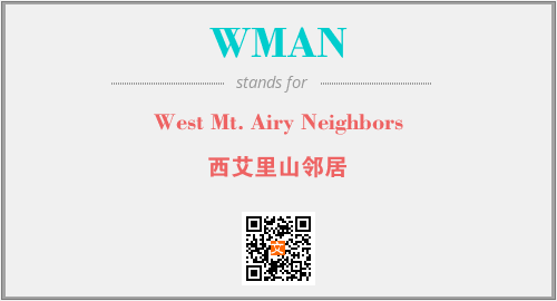 上述内容是“West Mt. Airy Neighbors”作为“WMAN”的缩写,解释为“西艾里山邻居”时的信息,以及英文缩略词WMAN所代表的英文单词,其对应的中文拼音、详细解释以及在英文中的流行度和相关分类、应用领域及应用示例等。