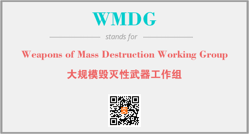 以上为Weapons of Mass Destruction Working Group英文缩略词WMDG的中文解释,以及该英文缩写在英语的流行度、分类和应用领域方面的信息。