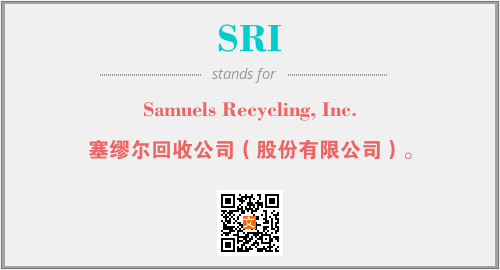 上述内容是“Samuels Recycling, Inc.”作为“SRI”的缩写,解释为“塞缪尔回收公司(股份有限公司)。”时的信息,以及英文缩略词SRI所代表的英文单词,其对应的中文拼音、详细解释以及在英文中的流行度和相关分类、应用领域及应用示例等。