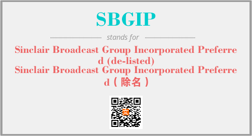 英文缩略词“SBGIP”经常作为“Sinclair Broadcast Group Incorporated Preferred (de-listed)”的英文缩写来使用,中文表示:“Sinclair Broadcast Group Incorporated Preferred(除名)”。本文将详细介绍英文缩写词SBGIP所代表英文单词,其对应的中文拼音、详细解释以及在英语中的流行度。此外,还有关于缩略词SBGIP的分类、应用领域及相关应用示例等。