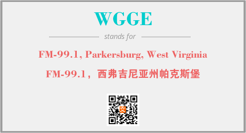 上述内容是“FM-99.1, Parkersburg, West Virginia”作为“WGGE”的缩写,解释为“FM-99.1,西弗吉尼亚州帕克斯堡”时的信息,以及英文缩略词WGGE所代表的英文单词,其对应的中文拼音、详细解释以及在英文中的流行度和相关分类、应用领域及应用示例等。