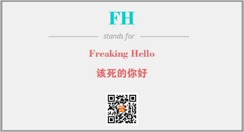 上述内容是“Freaking Hello”作为“FH”的缩写,解释为“该死的你好”时的信息,以及英文缩略词FH所代表的英文单词,其对应的中文拼音、详细解释以及在英文中的流行度和相关分类、应用领域及应用示例等。