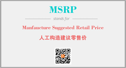 上述内容是“Manfaucture Suggested Retail Price”作为“MSRP”的缩写,解释为“人工构造建议零售价”时的信息,以及英文缩略词MSRP所代表的英文单词,其对应的中文拼音、详细解释以及在英文中的流行度和相关分类、应用领域及应用示例等。