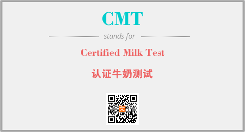 上述内容是“Certified Milk Test”作为“CMT”的缩写,解释为“认证牛奶测试”时的信息,以及英文缩略词CMT所代表的英文单词,其对应的中文拼音、详细解释以及在英文中的流行度和相关分类、应用领域及应用示例等。