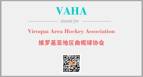 上述内容是“Viroqua Area Hockey Association”作为“VAHA”的缩写,解释为“维罗基亚地区曲棍球协会”时的信息,以及英文缩略词VAHA所代表的英文单词,其对应的中文拼音、详细解释以及在英文中的流行度和相关分类、应用领域及应用示例等。