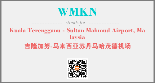 上述内容是“Kuala Terengganu - Sultan Mahmud Airport, Malaysia”作为“WMKN”的缩写,解释为“吉隆加努-马来西亚苏丹马哈茂德机场”时的信息,以及英文缩略词WMKN所代表的英文单词,其对应的中文拼音、详细解释以及在英文中的流行度和相关分类、应用领域及应用示例等。