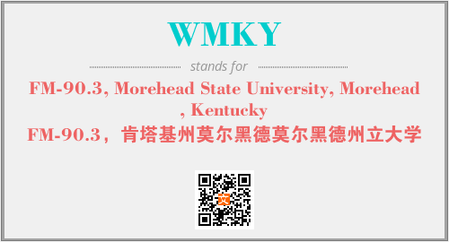 上述内容是“FM-90.3, Morehead State University, Morehead, Kentucky”作为“WMKY”的缩写,解释为“FM-90.3,肯塔基州莫尔黑德莫尔黑德州立大学”时的信息,以及英文缩略词WMKY所代表的英文单词,其对应的中文拼音、详细解释以及在英文中的流行度和相关分类、应用领域及应用示例等。