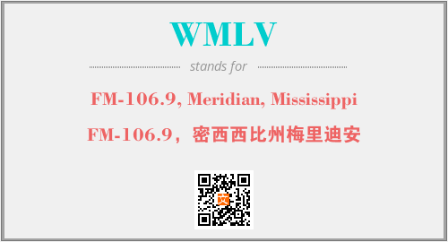 上述内容是“FM-106.9, Meridian, Mississippi”作为“WMLV”的缩写,解释为“FM-106.9,密西西比州梅里迪安”时的信息,以及英文缩略词WMLV所代表的英文单词,其对应的中文拼音、详细解释以及在英文中的流行度和相关分类、应用领域及应用示例等。