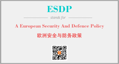 英文缩略词“ESDP”经常作为“A European Security And Defence Policy”的英文缩写来使用,中文表示:“欧洲安全与防务政策”。本文将详细介绍英文缩写词ESDP所代表英文单词,其对应的中文拼音、详细解释以及在英语中的流行度。此外,还有关于缩略词ESDP的分类、应用领域及相关应用示例等。