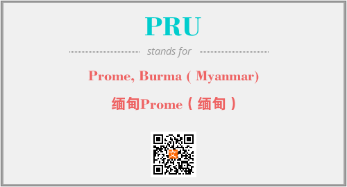 英文缩略词“PRU”经常作为“Prome, Burma ( Myanmar)”的英文缩写来使用,中文表示:“缅甸Prome(缅甸)”。本文将详细介绍英文缩写词PRU所代表英文单词,其对应的中文拼音、详细解释以及在英语中的流行度。此外,还有关于缩略词PRU的分类、应用领域及相关应用示例等。
