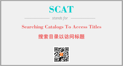 英文缩略词“SCAT”经常作为“Searching Catalogs To Access Titles”的英文缩写来使用,中文表示:“搜索目录以访问标题”。本文将详细介绍英文缩写词SCAT所代表英文单词,其对应的中文拼音、详细解释以及在英语中的流行度。此外,还有关于缩略词SCAT的分类、应用领域及相关应用示例等。