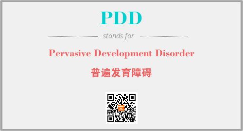 上述内容是“Pervasive Development Disorder”作为“PDD”的缩写,解释为“普遍发育障碍”时的信息,以及英文缩略词PDD所代表的英文单词,其对应的中文拼音、详细解释以及在英文中的流行度和相关分类、应用领域及应用示例等。