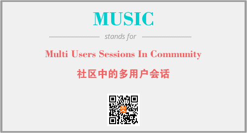 上述内容是“Multi Users Sessions In Community”作为“MUSIC”的缩写,解释为“社区中的多用户会话”时的信息,以及英文缩略词MUSIC所代表的英文单词,其对应的中文拼音、详细解释以及在英文中的流行度和相关分类、应用领域及应用示例等。