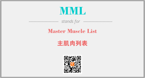 上述内容是“Master Muscle List”作为“MML”的缩写,解释为“主肌肉列表”时的信息,以及英文缩略词MML所代表的英文单词,其对应的中文拼音、详细解释以及在英文中的流行度和相关分类、应用领域及应用示例等。