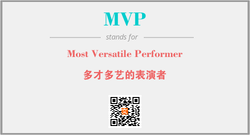 上述内容是“Most Versatile Performer”作为“MVP”的缩写,解释为“多才多艺的表演者”时的信息,以及英文缩略词MVP所代表的英文单词,其对应的中文拼音、详细解释以及在英文中的流行度和相关分类、应用领域及应用示例等。