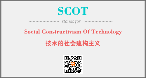上述内容是“Social Constructivism Of Technology”作为“SCOT”的缩写,解释为“技术的社会建构主义”时的信息,以及英文缩略词SCOT所代表的英文单词,其对应的中文拼音、详细解释以及在英文中的流行度和相关分类、应用领域及应用示例等。