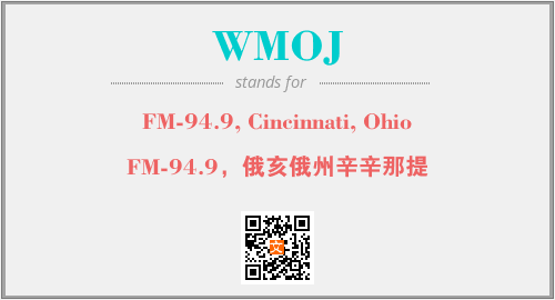 上述内容是“FM-94.9, Cincinnati, Ohio”作为“WMOJ”的缩写,解释为“FM-94.9,俄亥俄州辛辛那提”时的信息,以及英文缩略词WMOJ所代表的英文单词,其对应的中文拼音、详细解释以及在英文中的流行度和相关分类、应用领域及应用示例等。