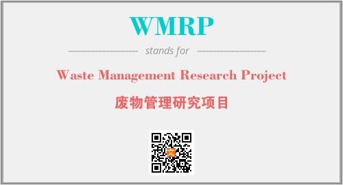 上述内容是“Waste Management Research Project”作为“WMRP”的缩写,解释为“废物管理研究项目”时的信息,以及英文缩略词WMRP所代表的英文单词,其对应的中文拼音、详细解释以及在英文中的流行度和相关分类、应用领域及应用示例等。