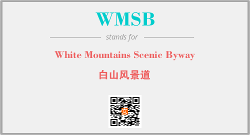 上述内容是“White Mountains Scenic Byway”作为“WMSB”的缩写,解释为“白山风景道”时的信息,以及英文缩略词WMSB所代表的英文单词,其对应的中文拼音、详细解释以及在英文中的流行度和相关分类、应用领域及应用示例等。