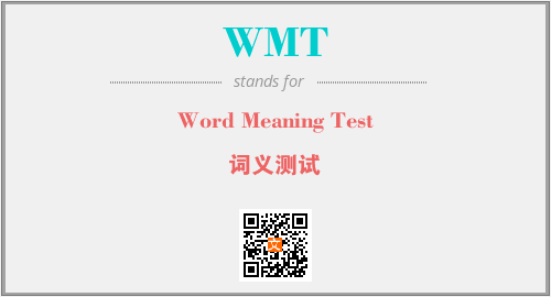 英文缩略词“WMT”经常作为“Word Meaning Test”的英文缩写来使用,中文表示:“词义测试”。本文将详细介绍英文缩写词WMT所代表英文单词,其对应的中文拼音、详细解释以及在英语中的流行度。此外,还有关于缩略词WMT的分类、应用领域及相关应用示例等。