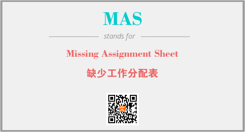 上述内容是“Missing Assignment Sheet”作为“MAS”的缩写,解释为“缺少工作分配表”时的信息,以及英文缩略词MAS所代表的英文单词,其对应的中文拼音、详细解释以及在英文中的流行度和相关分类、应用领域及应用示例等。