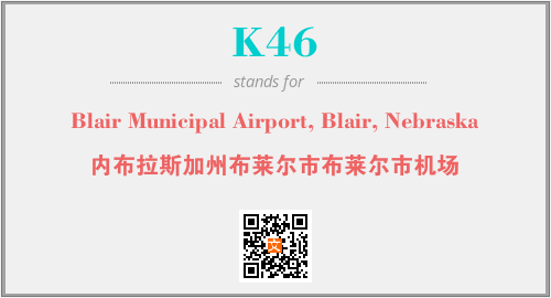 上述内容是“Blair Municipal Airport, Blair, Nebraska”作为“K46”的缩写,解释为“内布拉斯加州布莱尔市布莱尔市机场”时的信息,以及英文缩略词K46所代表的英文单词,其对应的中文拼音、详细解释以及在英文中的流行度和相关分类、应用领域及应用示例等。