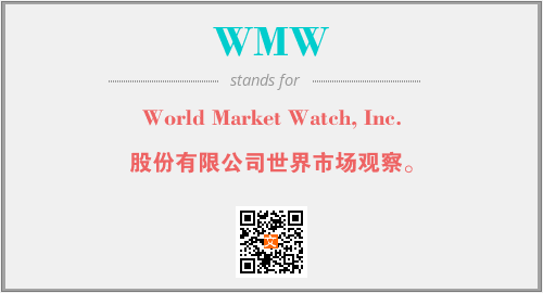 上述内容是“World Market Watch, Inc.”作为“WMW”的缩写,解释为“股份有限公司世界市场观察。”时的信息,以及英文缩略词WMW所代表的英文单词,其对应的中文拼音、详细解释以及在英文中的流行度和相关分类、应用领域及应用示例等。