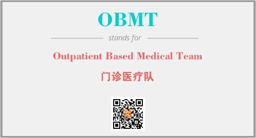英文缩略词“OBMT”经常作为“Outpatient Based Medical Team”的英文缩写来使用,中文表示:“门诊医疗队”。本文将详细介绍英文缩写词OBMT所代表英文单词,其对应的中文拼音、详细解释以及在英语中的流行度。此外,还有关于缩略词OBMT的分类、应用领域及相关应用示例等。