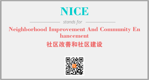 上述内容是“Neighborhood Improvement And Community Enhancement”作为“NICE”的缩写,解释为“社区改善和社区建设”时的信息,以及英文缩略词NICE所代表的英文单词,其对应的中文拼音、详细解释以及在英文中的流行度和相关分类、应用领域及应用示例等。