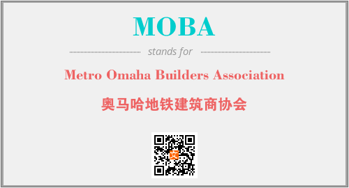 上述内容是“Metro Omaha Builders Association”作为“MOBA”的缩写,解释为“奥马哈地铁建筑商协会”时的信息,以及英文缩略词MOBA所代表的英文单词,其对应的中文拼音、详细解释以及在英文中的流行度和相关分类、应用领域及应用示例等。