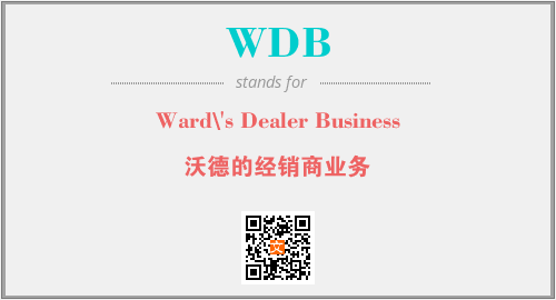 上述内容是“Ward\'s Dealer Business”作为“WDB”的缩写,解释为“沃德的经销商业务”时的信息,以及英文缩略词WDB所代表的英文单词,其对应的中文拼音、详细解释以及在英文中的流行度和相关分类、应用领域及应用示例等。