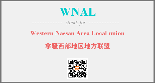 上述内容是“Western Nassau Area Local union”作为“WNAL”的缩写,解释为“拿骚西部地区地方联盟”时的信息,以及英文缩略词WNAL所代表的英文单词,其对应的中文拼音、详细解释以及在英文中的流行度和相关分类、应用领域及应用示例等。