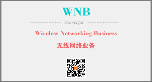 上述内容是“Wireless Networking Business”作为“WNB”的缩写,解释为“无线网络业务”时的信息,以及英文缩略词WNB所代表的英文单词,其对应的中文拼音、详细解释以及在英文中的流行度和相关分类、应用领域及应用示例等。