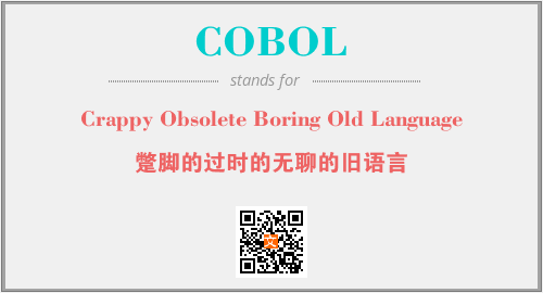 英文缩略词“COBOL”经常作为“Crappy Obsolete Boring Old Language”的英文缩写来使用,中文表示:“蹩脚的过时的无聊的旧语言”。本文将详细介绍英文缩写词COBOL所代表英文单词,其对应的中文拼音、详细解释以及在英语中的流行度。此外,还有关于缩略词COBOL的分类、应用领域及相关应用示例等。