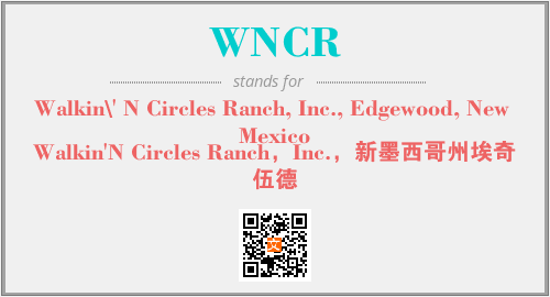 以上为Walkin\' N Circles Ranch, Inc., Edgewood, New Mexico英文缩略词WNCR的中文解释,以及该英文缩写在英语的流行度、分类和应用领域方面的信息。