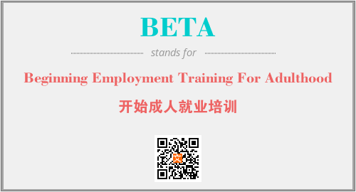 以上为Beginning Employment Training For Adulthood英文缩略词BETA的中文解释,以及该英文缩写在英语的流行度、分类和应用领域方面的信息。