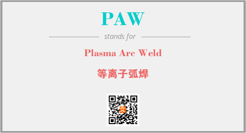 英文缩略词“PAW”经常作为“Plasma Arc Weld”的英文缩写来使用,中文表示:“等离子弧焊”。本文将详细介绍英文缩写词PAW所代表英文单词,其对应的中文拼音、详细解释以及在英语中的流行度。此外,还有关于缩略词PAW的分类、应用领域及相关应用示例等。
