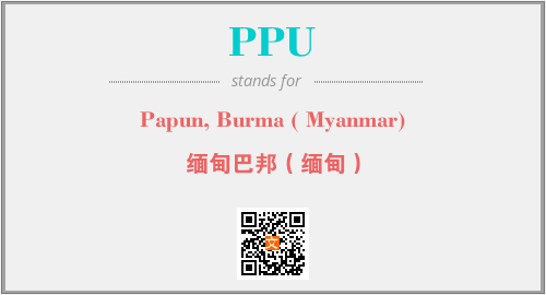 英文缩略词“PPU”经常作为“Papun, Burma ( Myanmar)”的英文缩写来使用,中文表示:“缅甸巴邦(缅甸)”。本文将详细介绍英文缩写词PPU所代表英文单词,其对应的中文拼音、详细解释以及在英语中的流行度。此外,还有关于缩略词PPU的分类、应用领域及相关应用示例等。