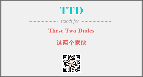 上述内容是“These Two Dudes”作为“TTD”的缩写,解释为“这两个家伙”时的信息,以及英文缩略词TTD所代表的英文单词,其对应的中文拼音、详细解释以及在英文中的流行度和相关分类、应用领域及应用示例等。