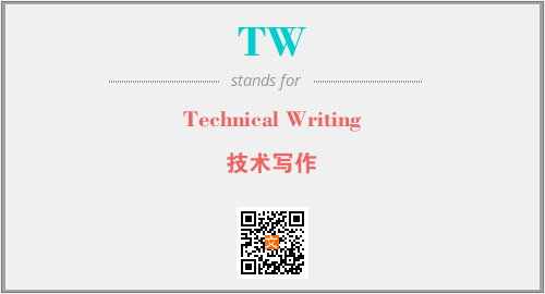 以上为Technical Writing英文缩略词TW的中文解释,以及该英文缩写在英语的流行度、分类和应用领域方面的信息。