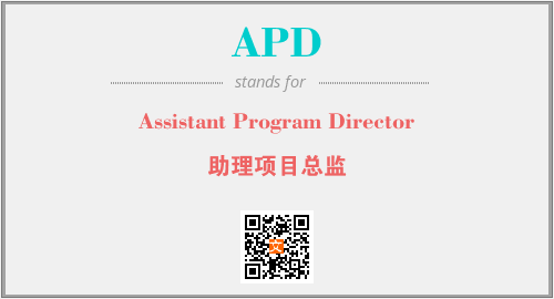 英文缩略词“APD”经常作为“Assistant Program Director”的英文缩写来使用,中文表示:“助理项目总监”。本文将详细介绍英文缩写词APD所代表英文单词,其对应的中文拼音、详细解释以及在英语中的流行度。此外,还有关于缩略词APD的分类、应用领域及相关应用示例等。