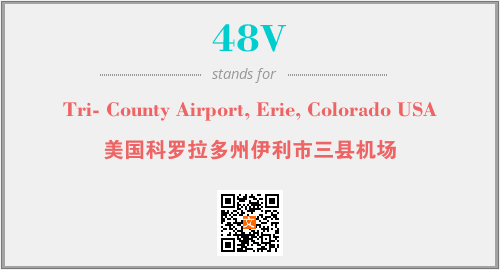 上述内容是“Tri- County Airport, Erie, Colorado USA”作为“48V”的缩写,解释为“美国科罗拉多州伊利市三县机场”时的信息,以及英文缩略词48V所代表的英文单词,其对应的中文拼音、详细解释以及在英文中的流行度和相关分类、应用领域及应用示例等。