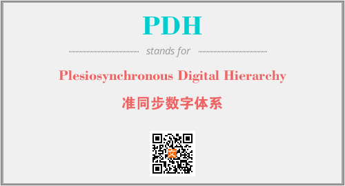 英文缩略词“PDH”经常作为“Plesiosynchronous Digital Hierarchy”的英文缩写来使用,中文表示:“准同步数字体系”。本文将详细介绍英文缩写词PDH所代表英文单词,其对应的中文拼音、详细解释以及在英语中的流行度。此外,还有关于缩略词PDH的分类、应用领域及相关应用示例等。