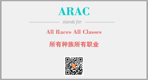 上述内容是“All Races All Classes”作为“ARAC”的缩写,解释为“所有种族所有职业”时的信息,以及英文缩略词ARAC所代表的英文单词,其对应的中文拼音、详细解释以及在英文中的流行度和相关分类、应用领域及应用示例等。