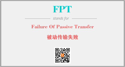 上述内容是“Failure Of Passive Transfer”作为“FPT”的缩写,解释为“被动传输失败”时的信息,以及英文缩略词FPT所代表的英文单词,其对应的中文拼音、详细解释以及在英文中的流行度和相关分类、应用领域及应用示例等。