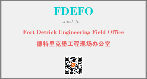 上述内容是“Fort Detrick Engineering Field Office”作为“FDEFO”的缩写,解释为“德特里克堡工程现场办公室”时的信息,以及英文缩略词FDEFO所代表的英文单词,其对应的中文拼音、详细解释以及在英文中的流行度和相关分类、应用领域及应用示例等。