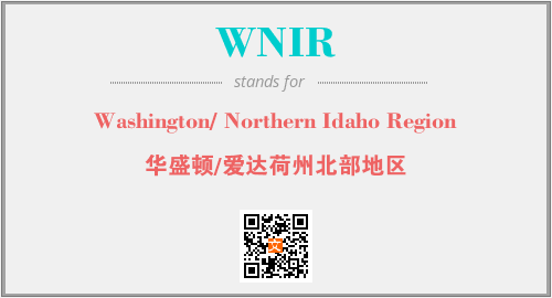 上述内容是“Washington/ Northern Idaho Region”作为“WNIR”的缩写,解释为“华盛顿/爱达荷州北部地区”时的信息,以及英文缩略词WNIR所代表的英文单词,其对应的中文拼音、详细解释以及在英文中的流行度和相关分类、应用领域及应用示例等。