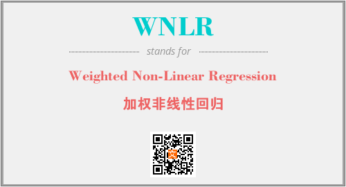 上述内容是“Weighted Non-Linear Regression”作为“WNLR”的缩写,解释为“加权非线性回归”时的信息,以及英文缩略词WNLR所代表的英文单词,其对应的中文拼音、详细解释以及在英文中的流行度和相关分类、应用领域及应用示例等。