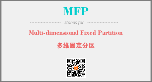 上述内容是“Multi-dimensional Fixed Partition”作为“MFP”的缩写,解释为“多维固定分区”时的信息,以及英文缩略词MFP所代表的英文单词,其对应的中文拼音、详细解释以及在英文中的流行度和相关分类、应用领域及应用示例等。